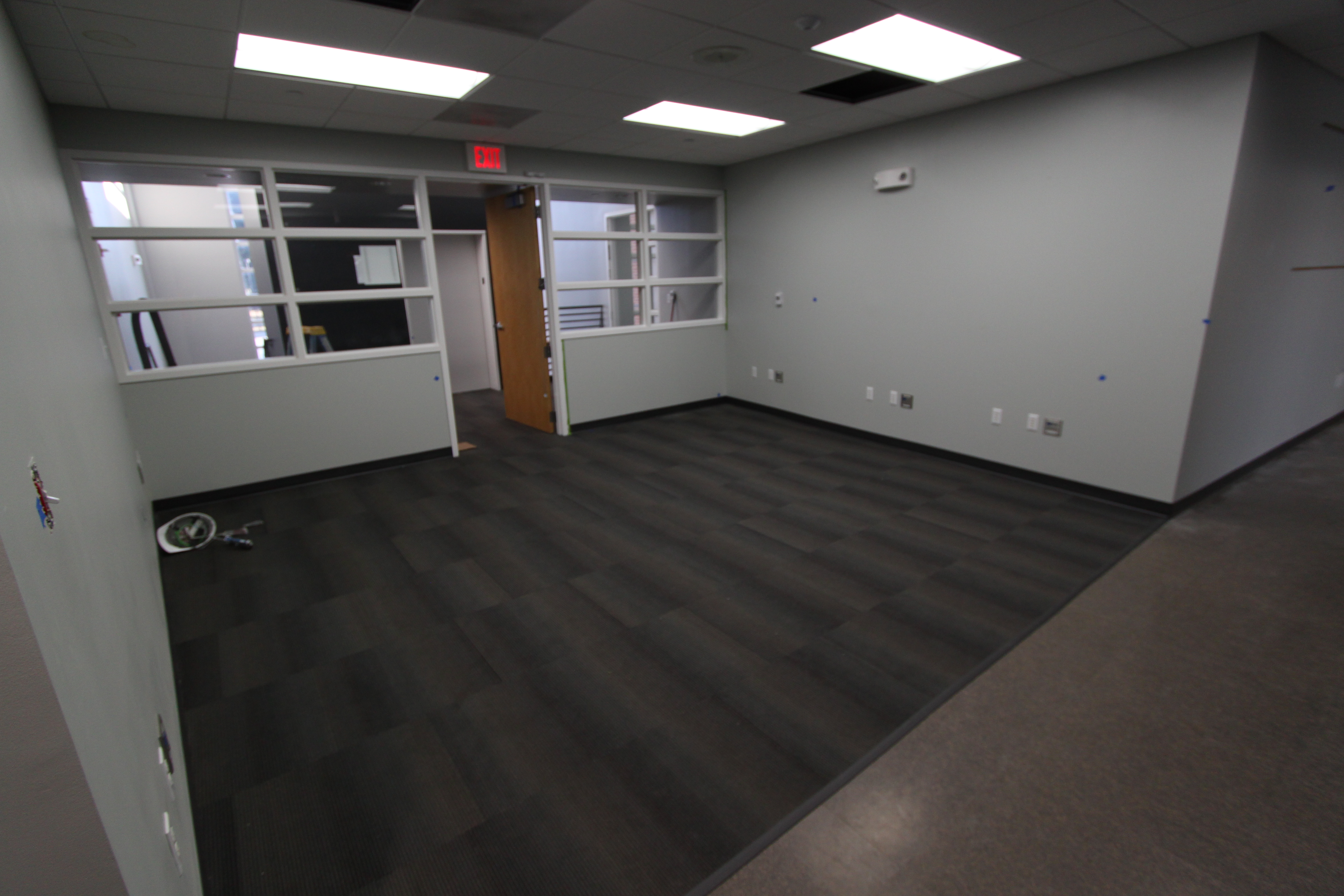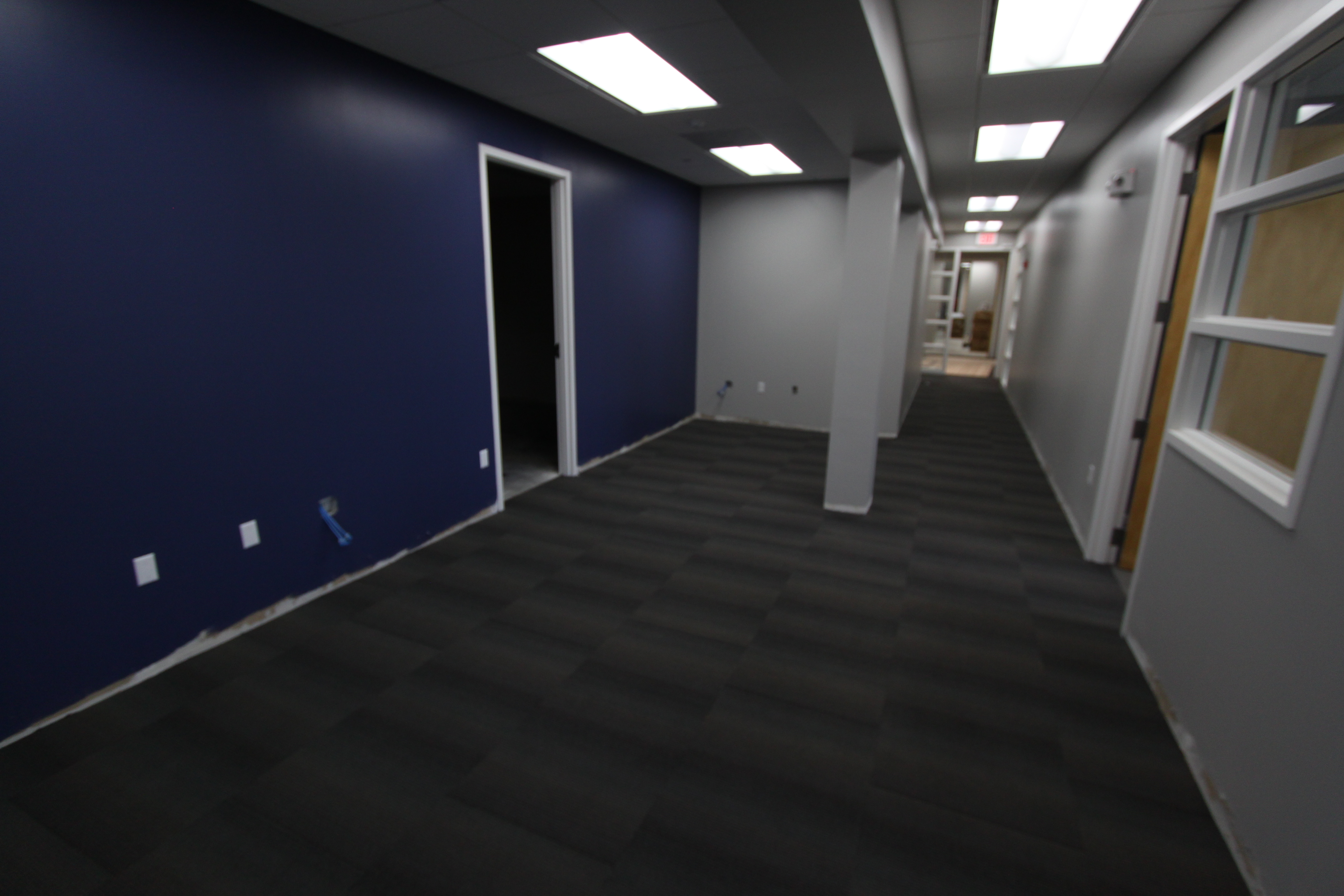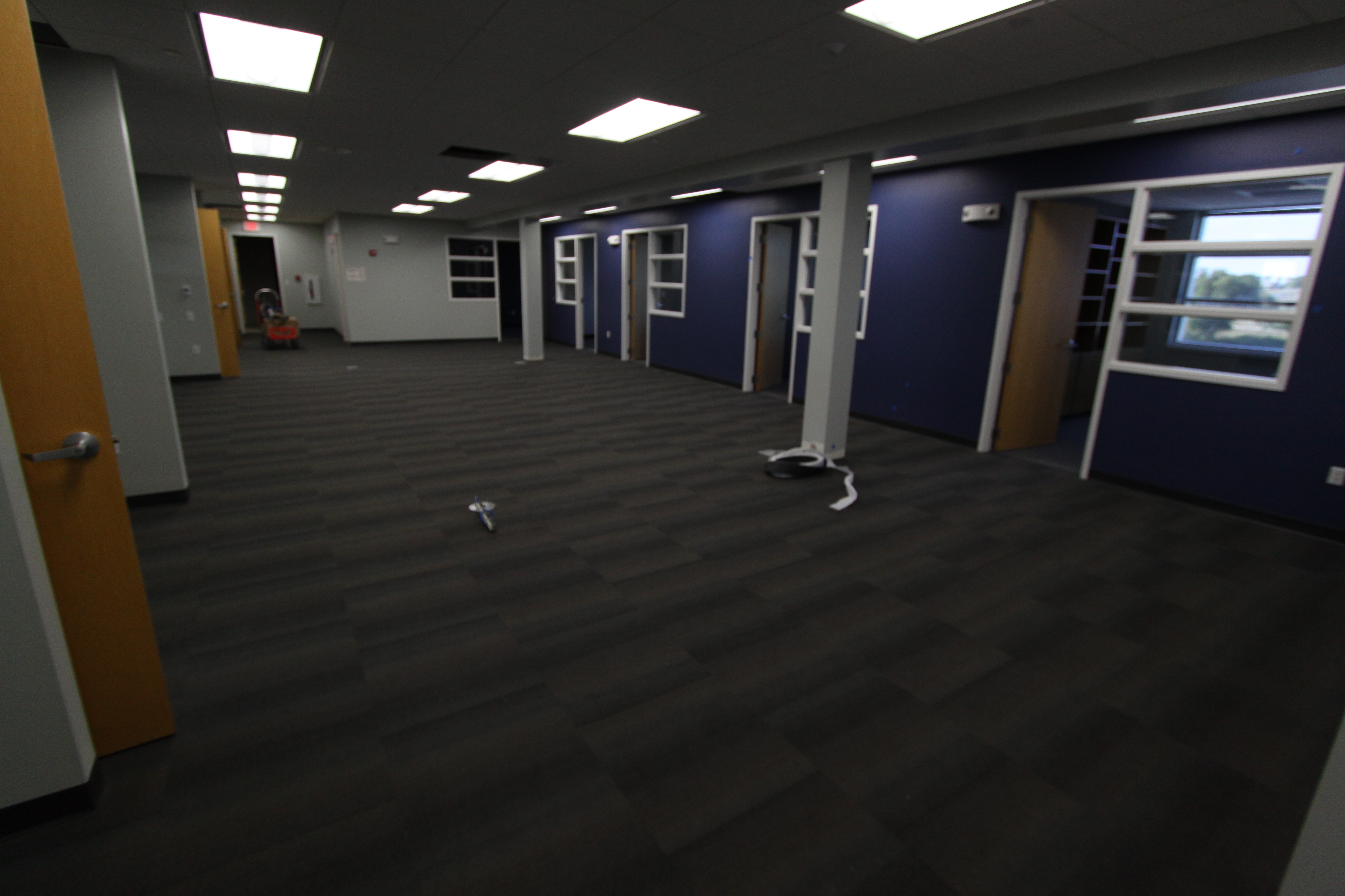 The project is coming along nicely, with finishing touches like carpet, ceiling, and lights going in now.  I must say that the designers for this building must really be into the following article… Why you must absolutely paint your walls gray.