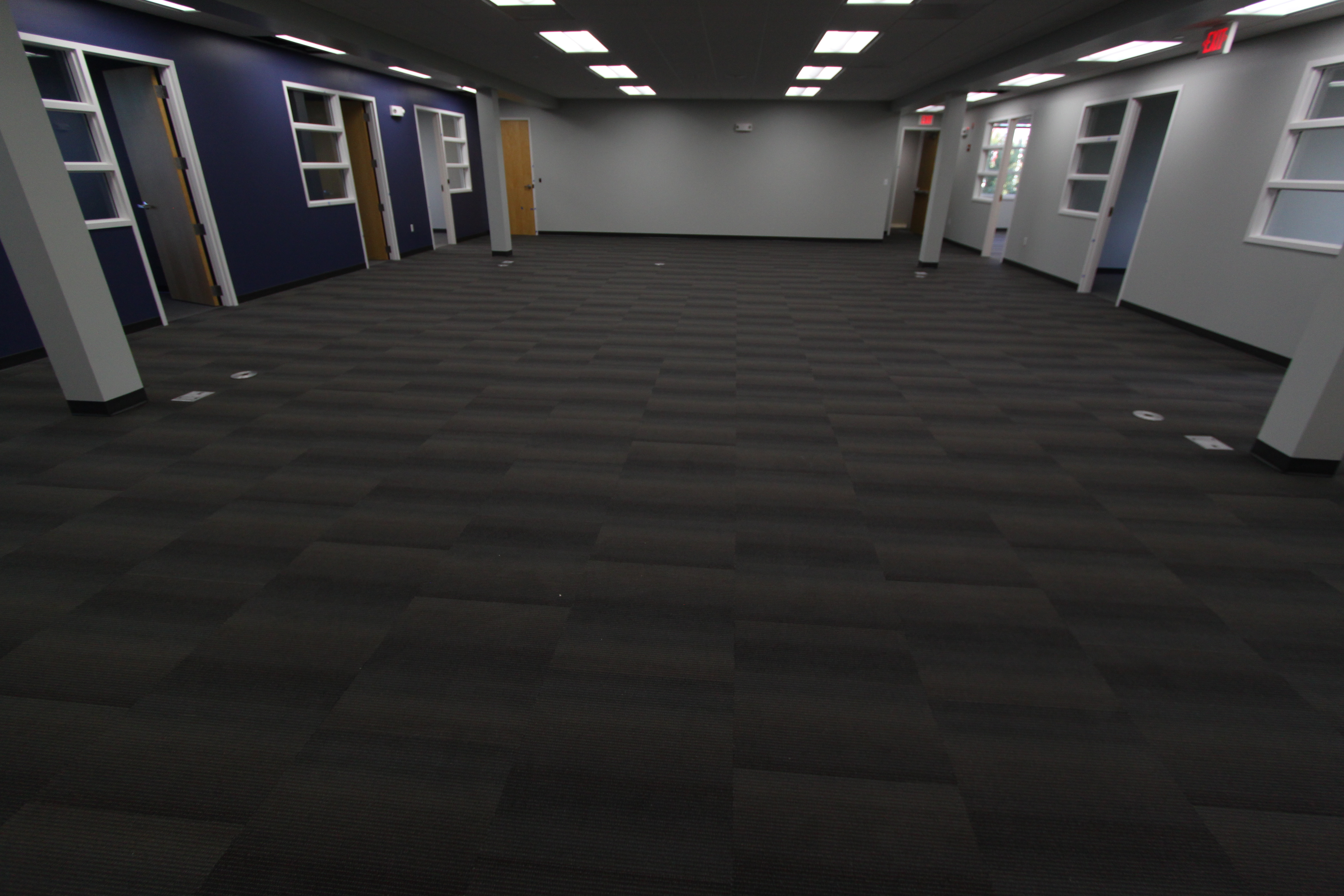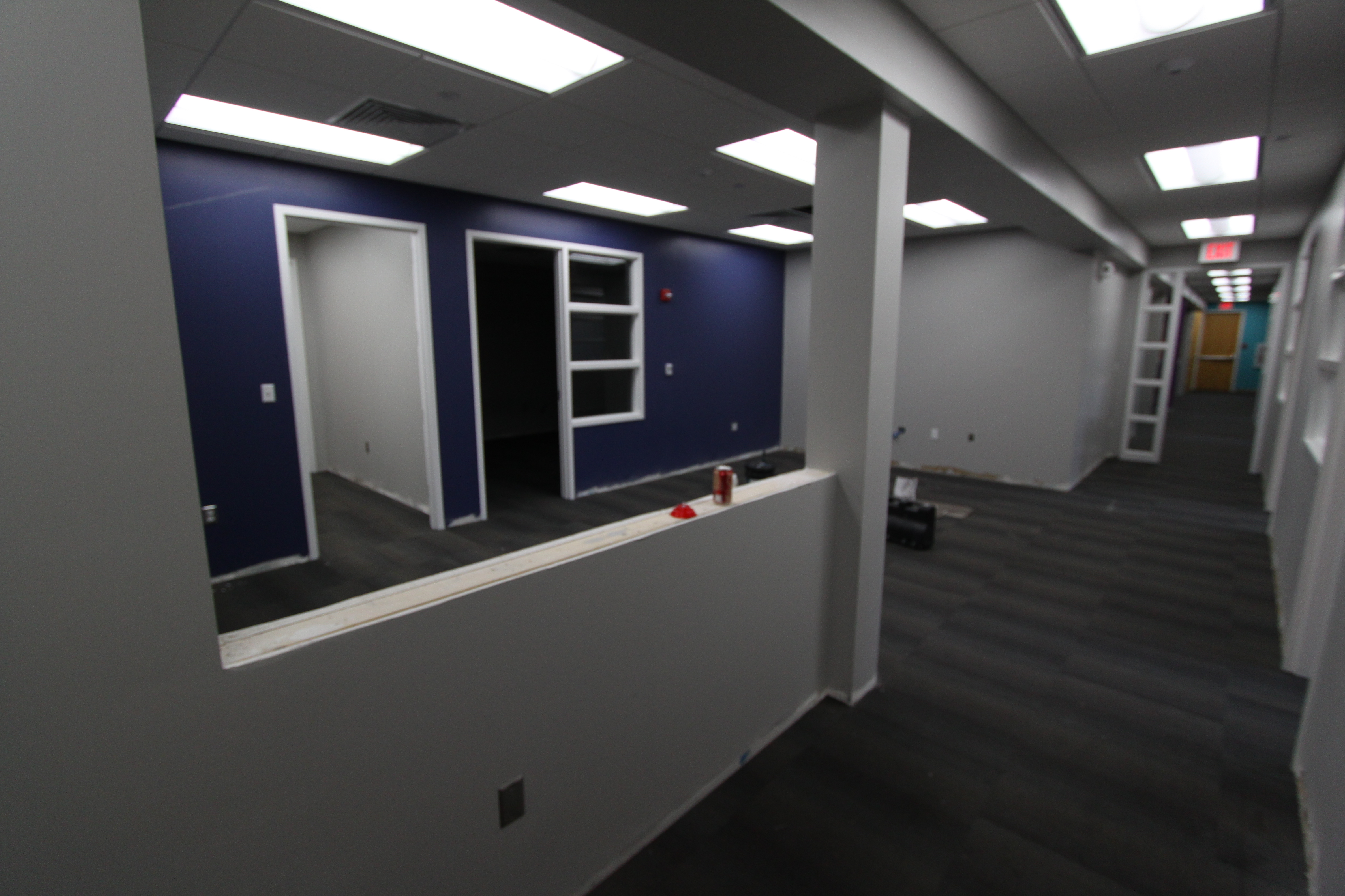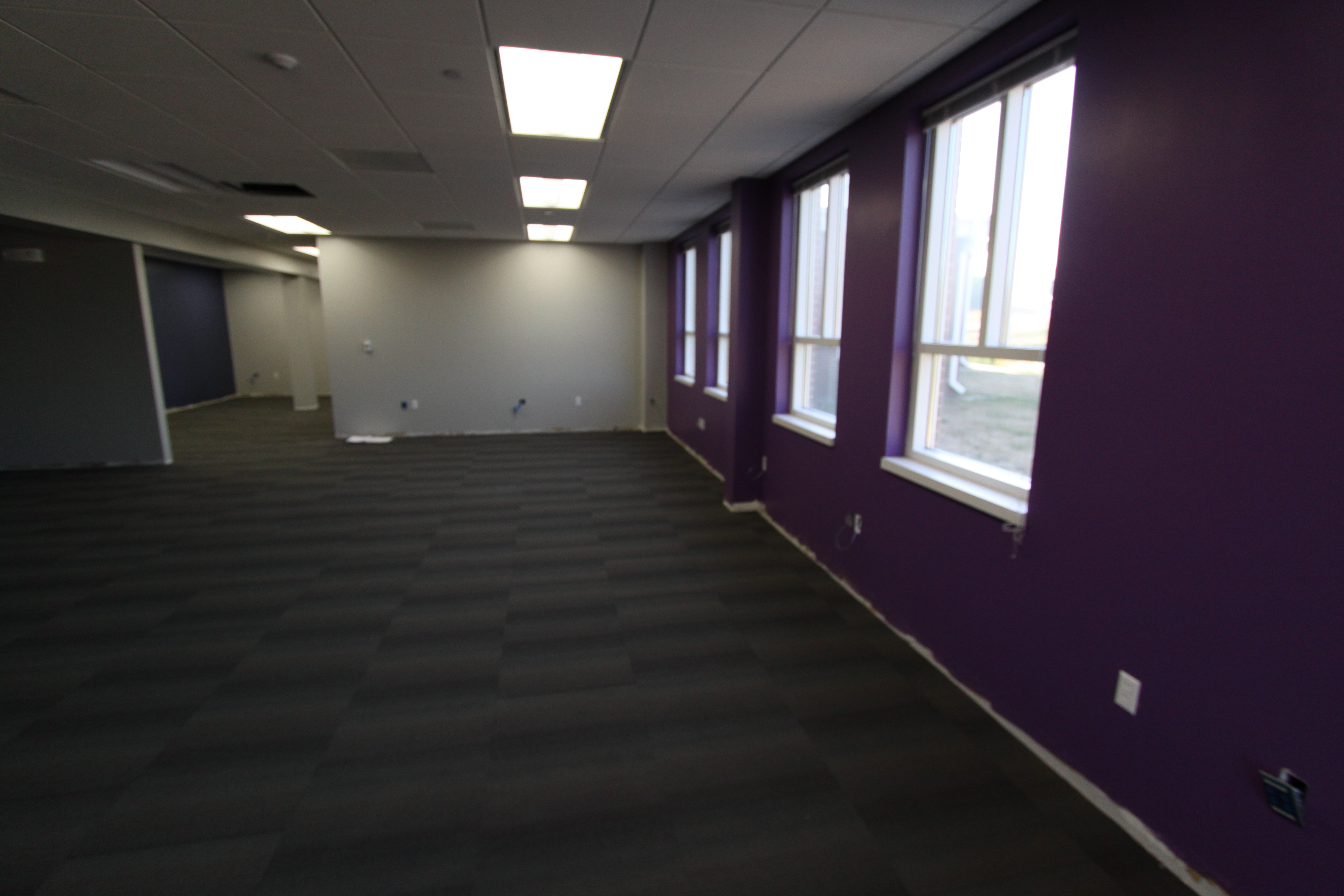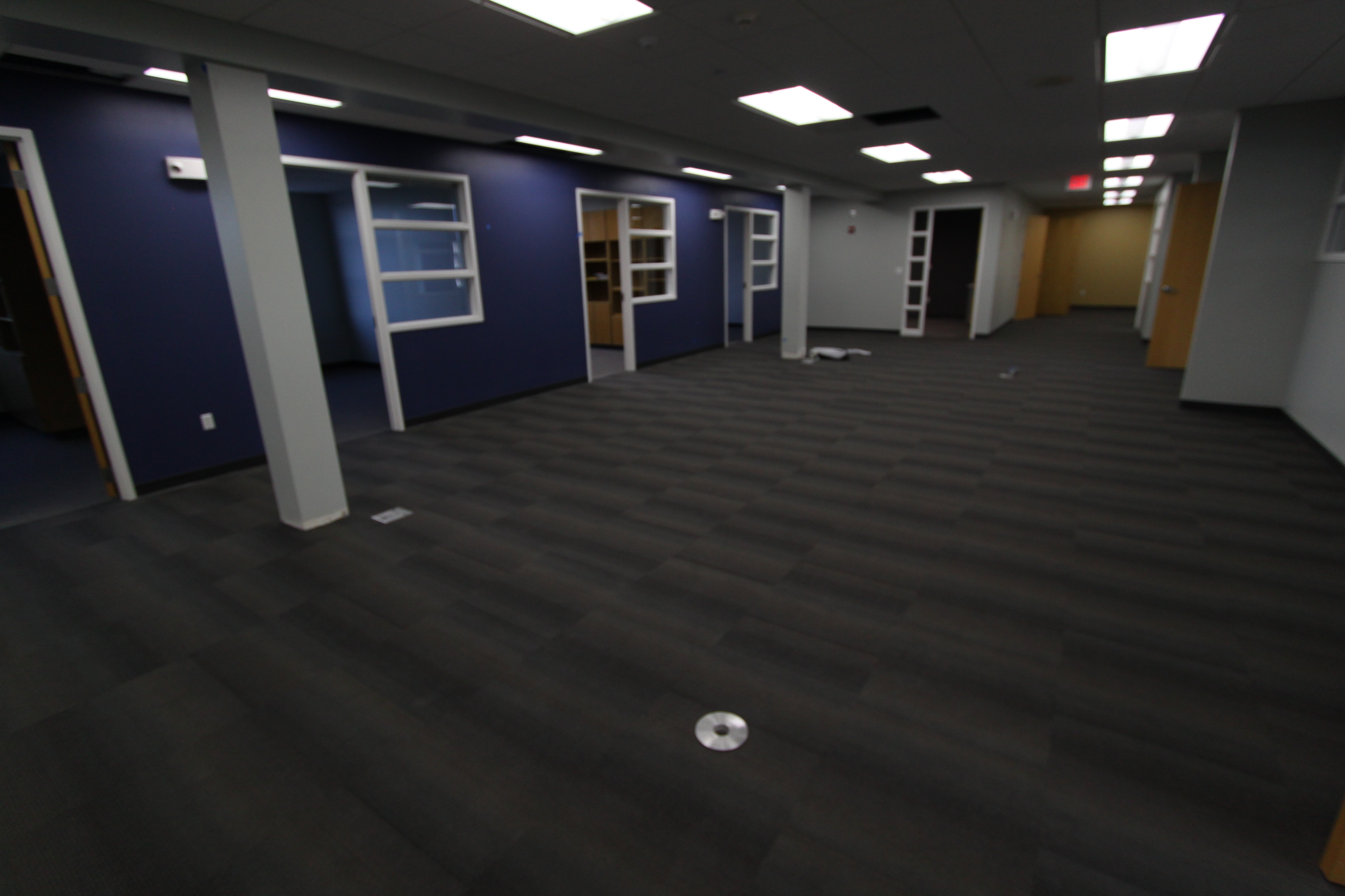 The project is coming along nicely, with finishing touches like carpet, ceiling, and lights going in now.  I must say that the designers for this building must really be into the following article… Why you must absolutely paint your walls gray.